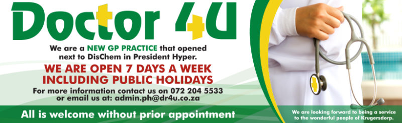 Home/Ads/Doctor 4U. New GP Practice that opened next to Dischem in President Hyper. AdsHealthLifestyleNewsSponsored Doctor 4U. New GP Practice that opened next to Dischem in President Hyper. May 15, 2019 Doctor 4U. New GP Practice that opened next to Dischem in President Hyper. Less than a minute Facebook X LinkedIn Tumblr Pinterest WhatsApp Telegram Share via Email Print At Caxton, we employ humans to generate daily fresh news, not AI intervention. Happy reading! May 15, 2019 Doctor 4U. New GP Practice that opened next to Dischem in President Hyper. Less than a minute Facebook X LinkedIn Tumblr Pinterest WhatsApp Telegram Share via Email Print