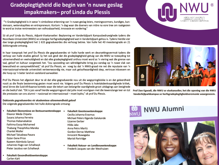 Gradeplegtigheid die begin van ‘n nuwe geslag impakmakers – prof Linda du Plessis NWU