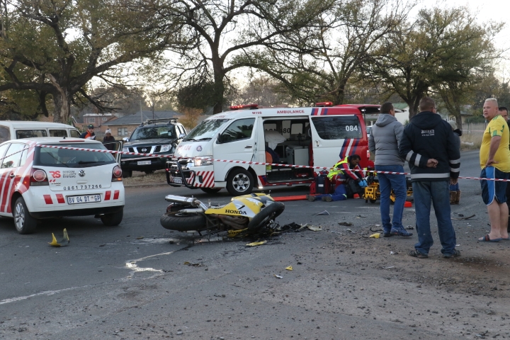 VANDERBIJLPARK. – ‘n Motorfietsryer is vanoggend, 5 Junie, baie ernstig beseer toe hy teen ‘n voertuig gebots het.
