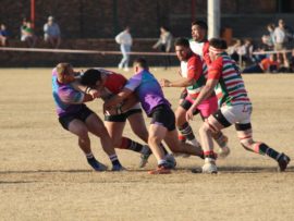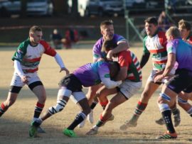 VEREENIGING. – Die kalk en hare het Saterdagmiddag op die Vereeniging Rugbyklub se tuisveld gespat in sy Peregrine-kragmetings teen NWU Vaal. In die hoofwedstryd van die dag het Vereeniging net-net daarin geslaag om NWU Vaal met 21-19 te klop. – Koop more Vaalweekblad vir nog prag aksiefoto’s en wedstrydverslag