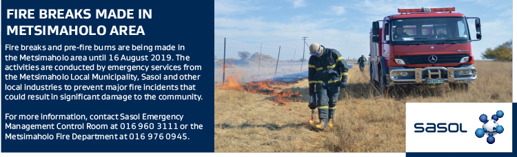 Sasol. Fire breaks made in Metsimaholo area.