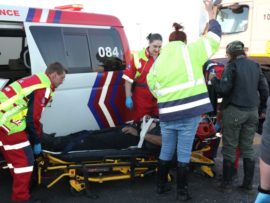 Insleepdienste en ER24 paramediese personeel was vinnig op die toneel en het Awie op die toneel gestabiliseer waar hy veelvuldige beenbreke opgedoen het. Awie is ‘n adjudant offisier verbonde aan die SAPD.
