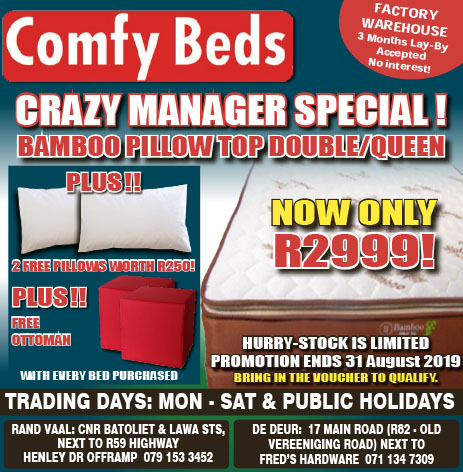 Crazy manager special! Bamboo pillow top double/queen now only R2999!