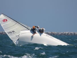 Raced to one-design class rules, the boat delivers a precise and exhilarating feel on the helm from the spacious 3-person cockpit. The sturdy carbon mast and wide cockpit, combines into speedy and secure sailing in a big breeze. Safety is paramount – the 100kg keel bulb ensures the boat qualifies in the stringent self-righting test according to the European Recreational Craft Directive and international stability buoyancy standard ISO 12217. Safety lines built in under the gunwale prevent “Man Overboard” (MOB) situations.