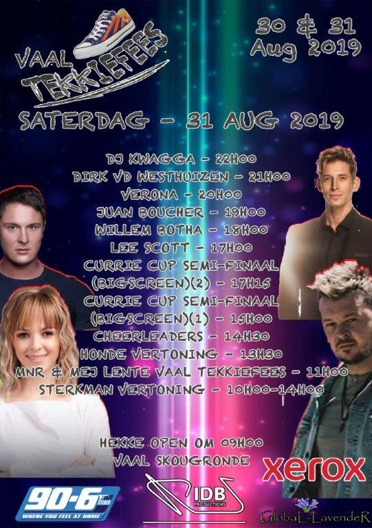 Vaal Tekkiefees. Saterdag 31 Augustus 2019 program.