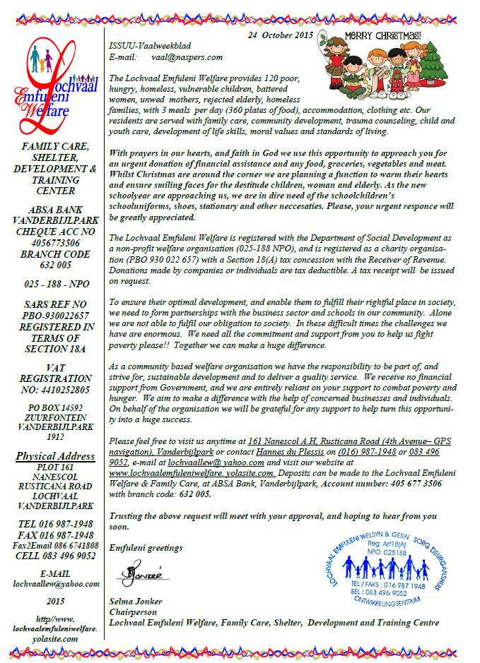 Lochvaal Emfuleni Welfare need your help