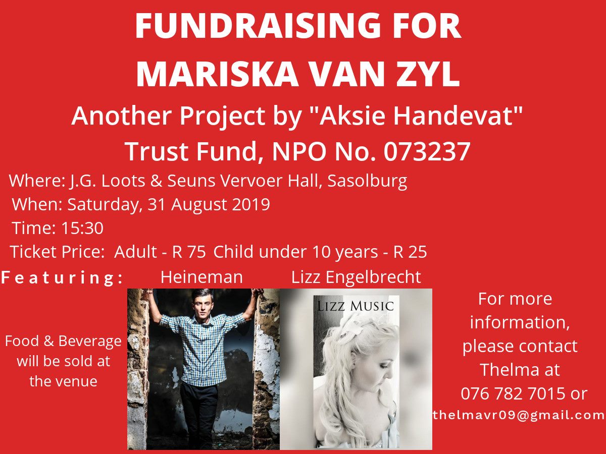 Sy sal egter nog behandeling moet ondergaan en om die rede word daar vir haar ‘n fondsinsameling gehou. Plaaslike inwoners kan Mariska help deur dit te ondersteun.