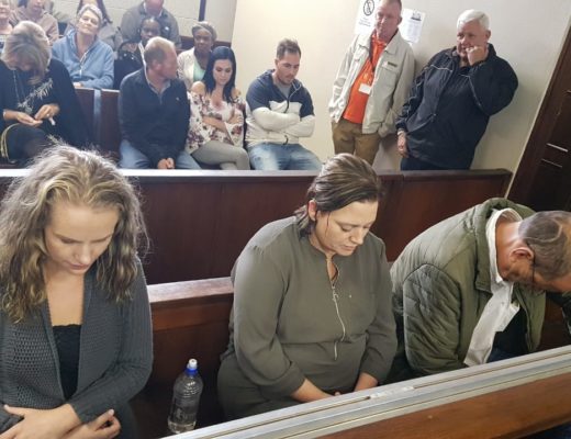 Landdros Hussein Khota lewer vanoggend uitspraak in die borgaansoek van Tharina Human (27), Laetitia Nel (40) en Pieter van Zyl (50) by die Streekhof in Vanderbijlpark. Die hof is tans in sitting. Hulle het na bewering die 6-jarige Amy’Leigh by haar skool, Laerskool Kollegepark, ontvoer en ‘n losprys vir haar vrylating gevra. Die staat staan ​​borgtog …