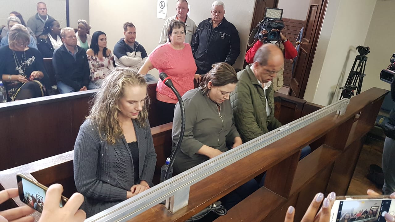 Landdros Hussein Khota lewer vanoggend uitspraak in die borgaansoek van Tharina Human (27), Laetitia Nel (40) en Pieter van Zyl (50) by die Streekhof in Vanderbijlpark. Die hof is tans in sitting. Hulle het na bewering die 6-jarige Amy’Leigh by haar skool, Laerskool Kollegepark, ontvoer en ‘n losprys vir haar vrylating gevra. Die staat staan ​​borgtog teen die drie beskuldigdes teen, en voer aan dat hulle vrylating die samelewing, Amy’Leigh en hulself, in gevaar sou stel.