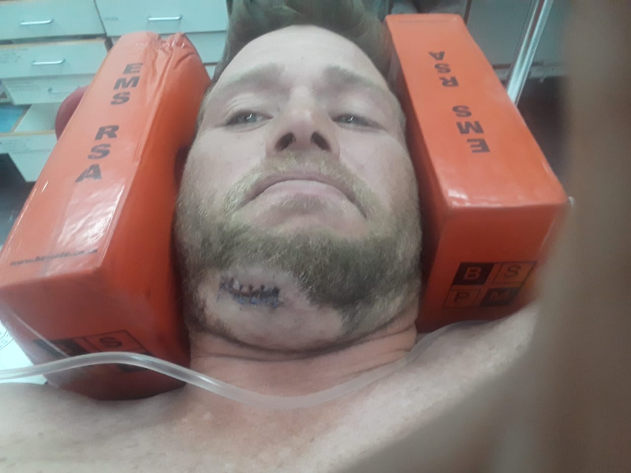 Hier is hy vir die oop wond aan sy ken behandel en moes steke kry. Later is daar vasgestel dat Ryno ’n nekbesering en ’n fraktuur van ’n laerugwerwel