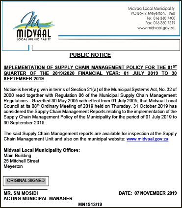 Midvaal Local Municipality. Public Notice.