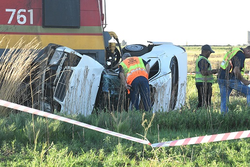 Die motor, ’n wit Mercedes- Benz, is deur die snelbewegende vragtrein meegesleur en het honderde meter vanaf die kruising tot stilstand gekom. Midvaal Fire and Rescue moes help om die lyk van die man uit die opgefrommelde