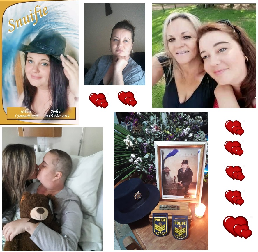 * Sersant Pretorius (35), wat onder andere in De Deur en Klerksdorp vir die SAPD gewerk het, het op 29 Oktober aan breinkanker gesterf. Haar ma, mev. Amanda de Goede van die Vaaldriehoek, gee dié bykomende inligting: “Al die dokters het haar vir 8 jaar gediagnoseer met sinus. Toe word sy een oggend deurmekaar wakker. Ons neem haar toe vir ‘n breinskandering en vind uit sy het ‘n breintumor. Hulle het haar einde Julie 2019 geopereer. Die kanker was baie aggressief en het deur haar hele liggaam versprei. Sy is oorlede op 29 Oktober 2019.”