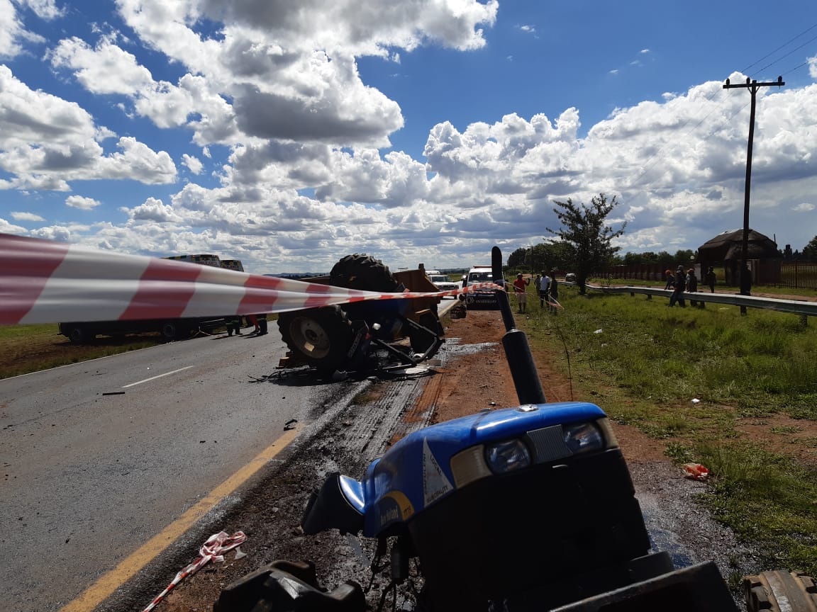 “ER24 paramedics arrived on the scene at 14h30 to find the truck parked on the side of the road while the tractor had split into two, both pieces on the side of the road. Paramedics assessed the patients, who had been on the trailer at the time of the collision, and found that six people had been injured,” ER24 Spokesperson Ross Campbell said.