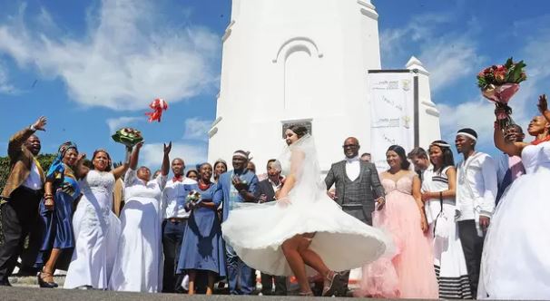 “There will also be an opportunity for the couples to take their wedding photos on the beach and to capture the iconic and other scenic areas on the island. The couples will return to Cape Town in the afternoon.”