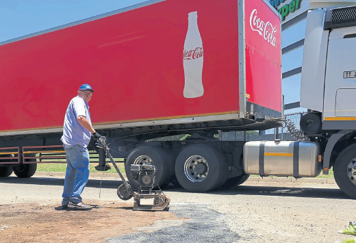 “Ander besighede wat ook wil inspring, kan die teer by B&R Hardeware teen R89 per sak koop. Een sak teer weeg sowat 25kg,” sê Tobie Kirsten, bestuurder van Engen Arconpark. Hul personeellede wat vir die dag se harde werk bedank moet word is: