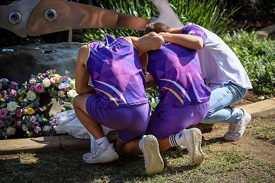 VANDERBIJLPARK. – Hoërskool Driehoek het Vrydag (31 Januarie) ‘n spesiale herdenkingsdiens gehou tydens die saalopening. Vier kranse met pers, geel, wit en pienk blomme het links voor die verhoog versier as ‘n herinnering aan die vier leerlinge wat verlede jaar in die brug tragedie oorlede is.