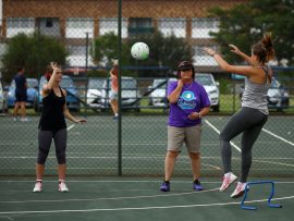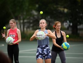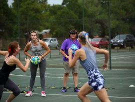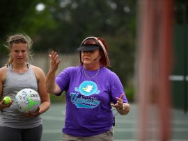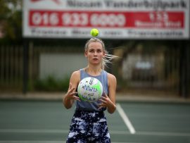 VANDERBIJLPARK. – Amanda Dreyer, netbalafrigter van die Noordwes-Universiteit se Vanderbijlparkkampus, het verlede week ‘n D8-netbal beginners afrigtingskliniek op die Hoërskool Transvalia se bane aangebied.