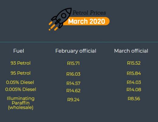The March product price adjustment is the third consecutive drop in the petrol price since the start of the year. This might be the last month where the petrol price goes down like that after Finance Minister Tito Mboweni announced fuel levy increases during his Budget Speech last week.