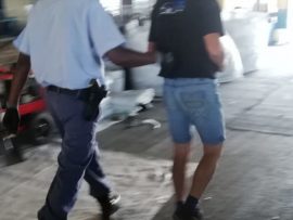 James Williams, eienaar van Trio Bulk Bags, vertel dat swaargewapende lede van die polisie met agt voertuie op sy sakeperseel in Hoystraat toegesak en mense links en regs in hegtenis geneem het.