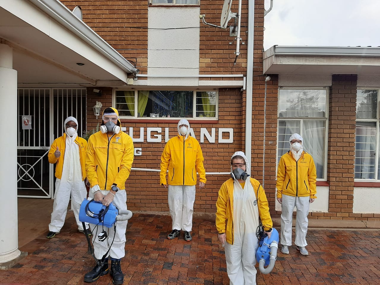 In helder geel getooi en gewapen met hul maskers en spuitkannetjies moes dit nogal ‘n vreemde gesig vir die inwoners gewees het. Gelukkig was daar niks te vrees nie, die span is opgelei om ‘n veilige omgewing te skep.