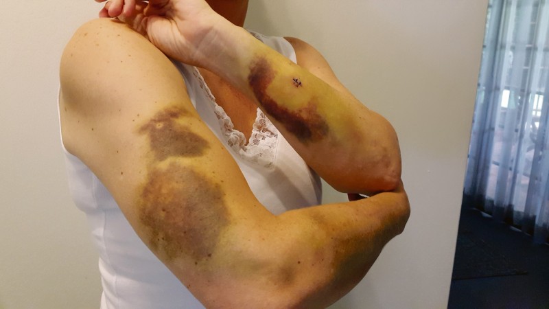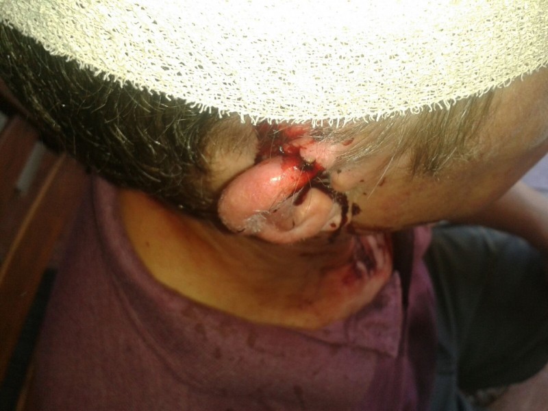 Intussen het André hom na die sitkamer gehaas en hom teen die ander twee rowers vasgeloop. Een het André teen die oor en die kant van sy kop geslaan. “Ek het terugbaklei en kon daarin slaag om ‘n houtstomp by een van hulle af te neem,” sê André. Die bakleiery het tot in die agtererf gevorder.