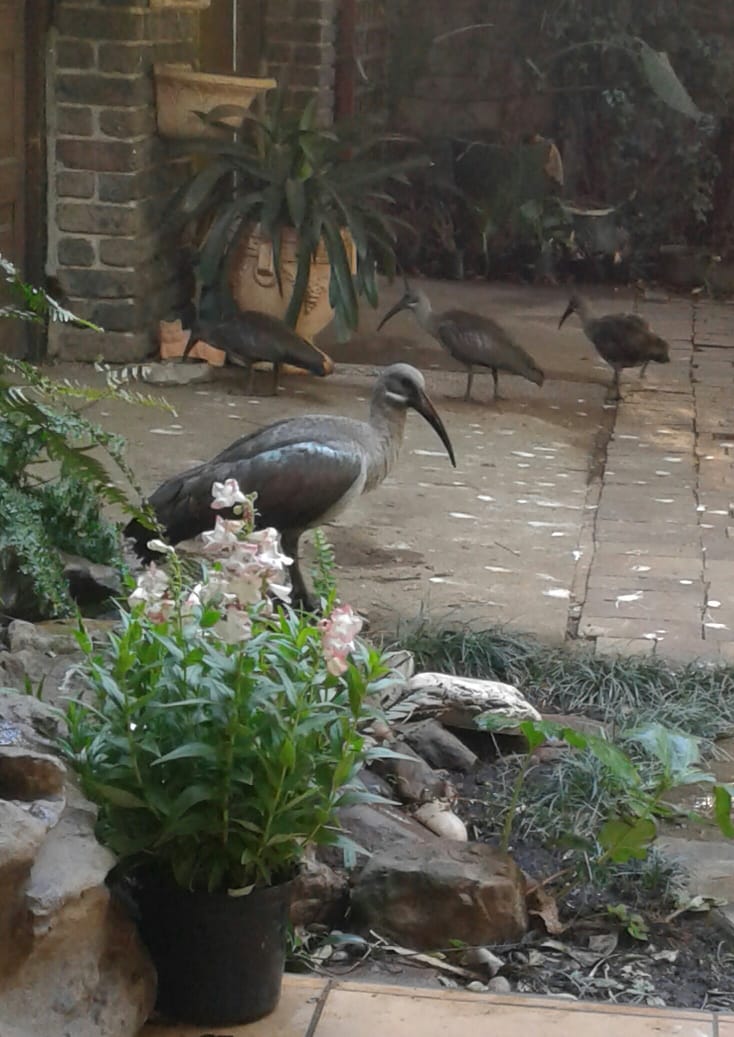 Intussen is daar nou sowat 19 hadidas wat in die middae met ‘n gejuig by die huis opdaag, want hulle weet om 16:00 is dit etenstyd.