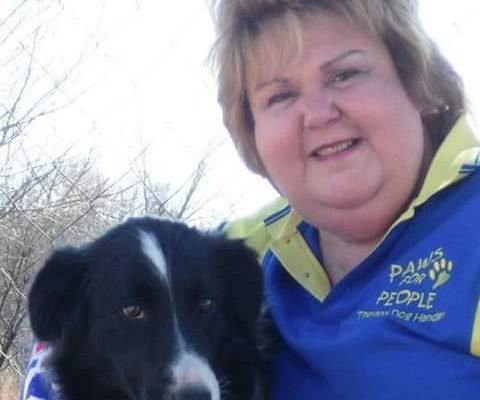 Magda Maire van Vereeniging en een van haar viervoetkinders, Zoë die skaaphond.