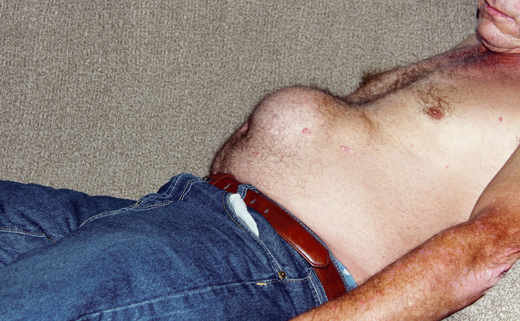 Die probleem is egter dat die septiese wonde die derms deur die maagvlies gedruk het en dit lê net onder die vel. Dit veroorsaak hardlywigheid.