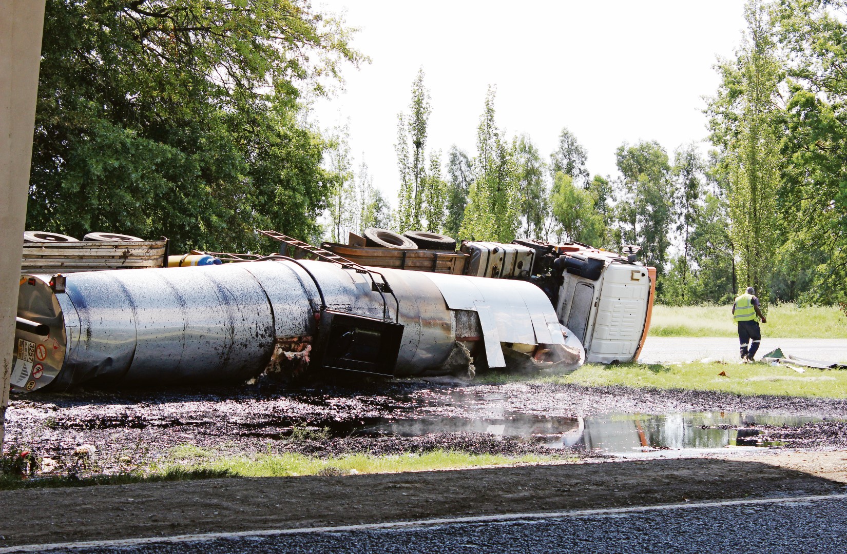 SASOLBURG. – ‘n Tenkwa wat bitumen vervoer het, het vir groot chaos gesorg toe dit verlede Dinsdagmiddag op die R57 net buite Sasolburg in die rigting van Vanderbijlpark omgeslaan het.