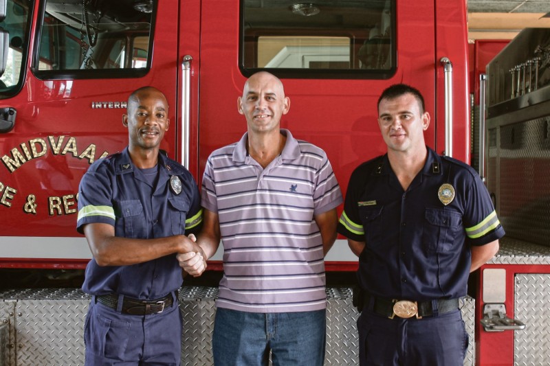 VEREENIGING. – “Dit is ‘n wonderwerk dat ek leef. Mense moet glo in God en in wonderwerke.” Dit is die woorde van Arend Pretorius (47) wat op die randjie van die dood was na hy in ‘n kettingbotsing betrokke was. Arend is een van die oorlewendes wat op 25 Junie 2015 in die kettingbotsing op die R59 betrokke was. Hy was onderweg na Johannesburg toe swaar rook weens ‘n veldbrand motoriste se sig belemmer het. Nege voertuie het teen mekaar gebots en vyf persone het beserings opgedoen, waarvan drie in ‘n kritieke toestand was. Arend was een van die mense wat noodpersoneel aanvanklik gedink het reeds dood is. Hy was vir meer as ‘n uur in sy voertuig vasgevang. Brandweerpersoneel van Midvaal Brandweer het hom met behulp van lewenskake uit die wrak gesny. Hy is op die toneel behandel, waarna hy per helikopter na die Unie Hospitaal in Alberton gevlieg is. Hy het onder meer hoofbeserings, lase-rasies en lewerskade opgedoen. Sy femur was ook gebreek en sy lip oopgesny. “Volgens die dokters was sy kans op oorlewing maar 42 persent, maar ek het geweet hy gaan dit maak. Ek het volle vertroue in die Here gehad,” se Arend se vrou, Antoinette. Arend was vir nege weke in die hospitaal, waarvan hy vir 35 dae in die intensiewe sorgeenheid was en 26 dae onder sedasie was. Daar is ook 200mm van sy dunderm en 100mm van sy dikderm verwyder. Hy was skaars vyf weke by die huis toe hy weer in die hospitaal opgeneem is. As gevolg van sy inwendige beserings het hy nierversaking opgedoen. Dié keer was hy drie weke in die hospitaal, waarvan hy ‘n week en ‘n half in die intensiewe sorgeenheid opgeneem was. Arend het op 20 November ‘n ileostomie ondergaan en sedertdien het dit weldra beter gegaan met hom. Hy het teen einde Desember sonder krukke begin loop. Hoewel hy 23 kilogram sedert die ongeluk verloor het, is hy positief en glo hy dat hy ‘n tweede kans gekry het. “Ek voel die ongeluk moes gebeur het, want na al die sleg het my lewe ten goede verander.” Arend en sy familie het op 20 Februarie spesiaal die brandweerpersoneel van Midvaal Brandweer bedank vir wat hulle tydens die ongeluk vir hom gedoen het. “Mense besef nie wat die brandweer op ‘n daaglikse basis doen nie. As dit nie vir julle was nie sou ek seker nie vandag gelewe het nie,” sê hy. Jonas Mamatela van Midvaal Brandweer wat Arend uit die motorwrak gesny het, het gesê hy is bly om te sien hy leef, want dit is wat hulle doen; hulle red lewens. Arend het steeds seer, maar dit gaan elke dag bietjie beter. Twee weke na die ongeluk het sy werkkontrak verval en nou hou hy hom besig met meganiese tekenwerk by die huis en soek tans werk. Hy het twee dogters, Natasha (19) en Talita (15) wat baie dankbaar is dat hul pappa vandag leef.