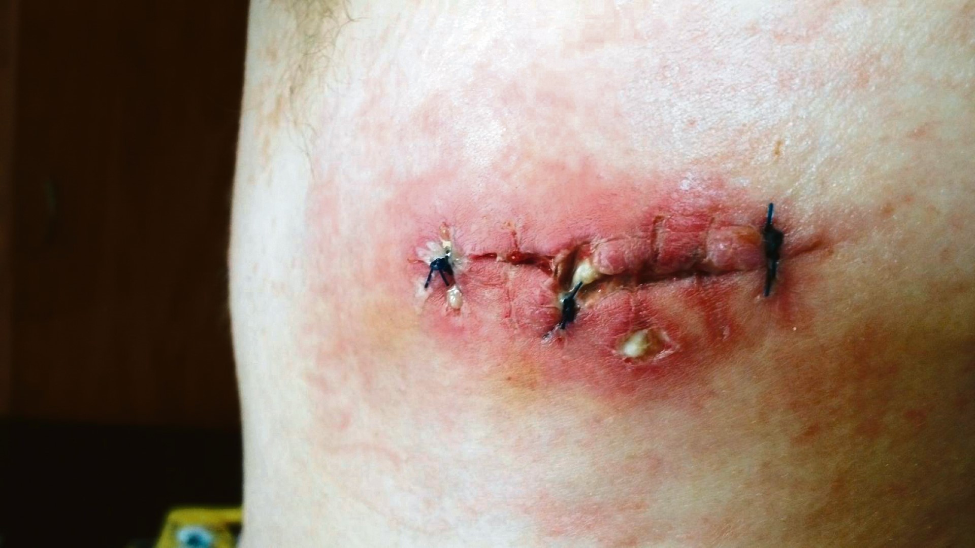 Hy is in die Kopanong-hospitaal opgeneem, waar sy diep wonde geheg is.