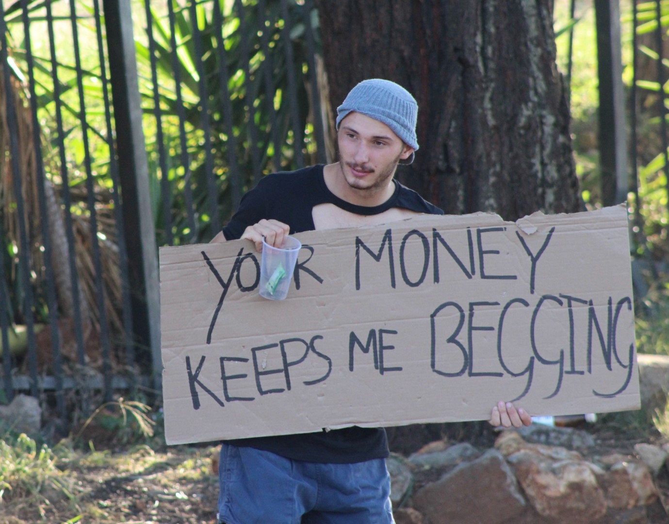 Hierdie taktiek is daarop gemik om die publiek daarop te wys dat daar onnadenkend en om verkeerde redes aan bedelaars gegee word.