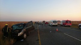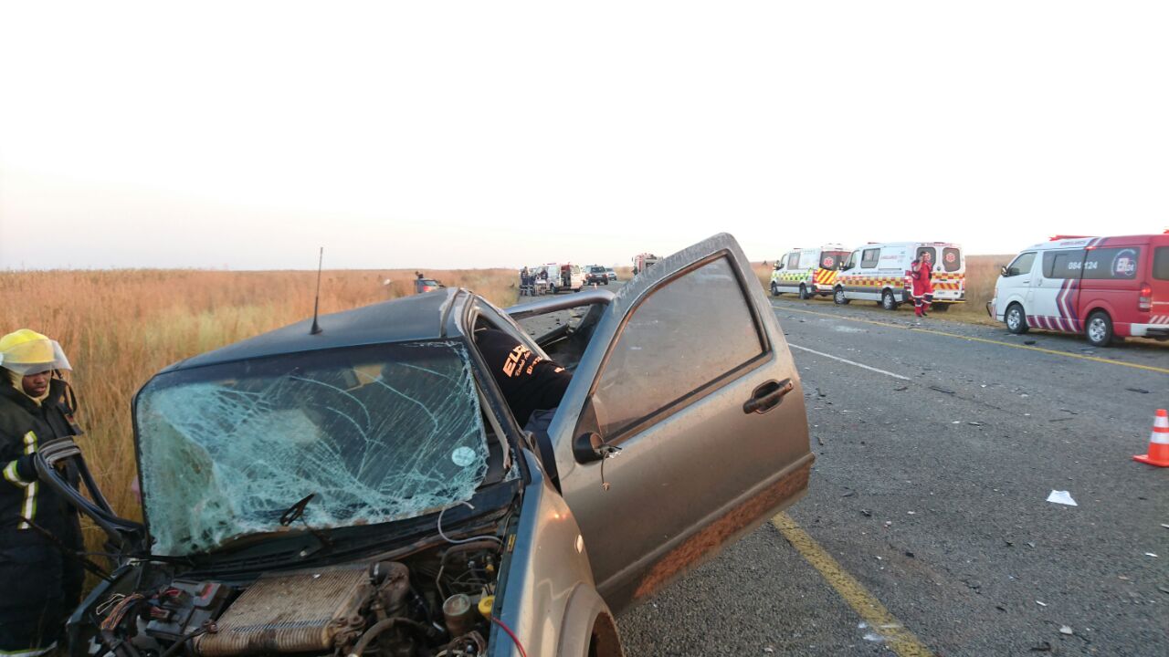 Twee ernstige motoronglukke het Dinsdagoggend 17 Mei in Vanderbijlpark plaasgevind. Die tweede een het net na 06:00 op die Golden Highway net voor die N1 plaasgevind. Twee mense is dood en twee beseer in die ongeluk waarin ‘n VW Polo, Hyuandai en Izuzu bakkie betrokke was. Nooddienste en polisie is op die toneel. In nog ‘n ongeluk ongeveer 06:00 op die kruising van Delfos en Daimler het ‘n voertuig gerol. Dit is nog onbekend of daar enige beserings is. Foto’s: Jannie du Plessis.