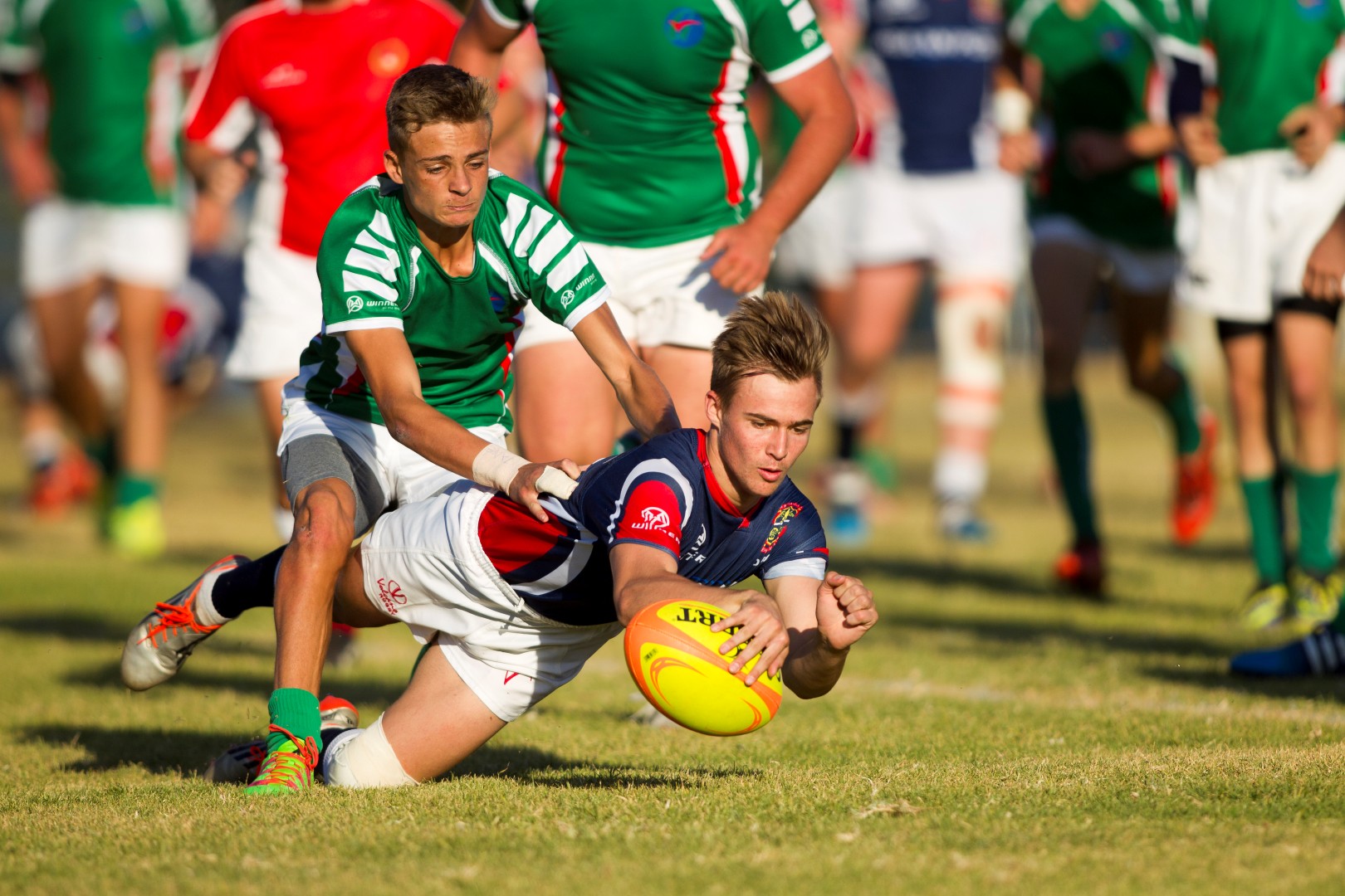 Klokslag 12:30 elke Saterdag skop die eerstespan-kragmetings van skole regoor Suid-Afrika op lowergroen of soms droë bruin velde af.