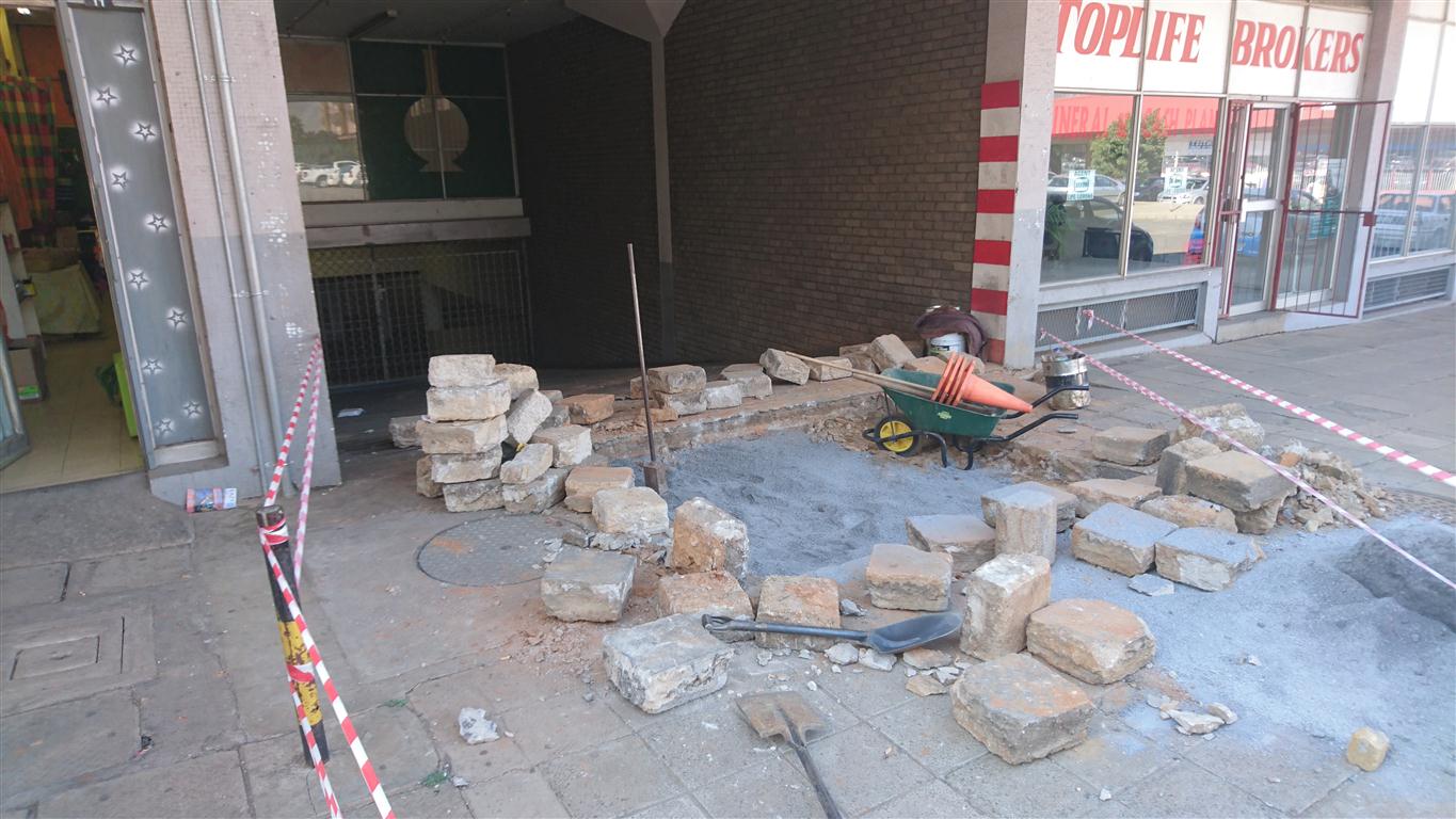 The Ekspa caretaker and owner as well as the Old Mutual franchise there, took it upon themselves to buy cement.  The entrance to the basement has been cordoned off for repairs for a month.