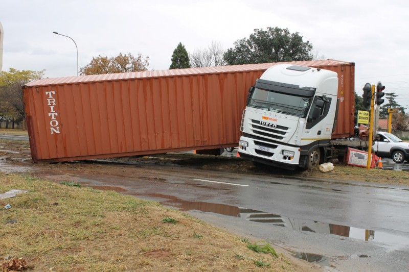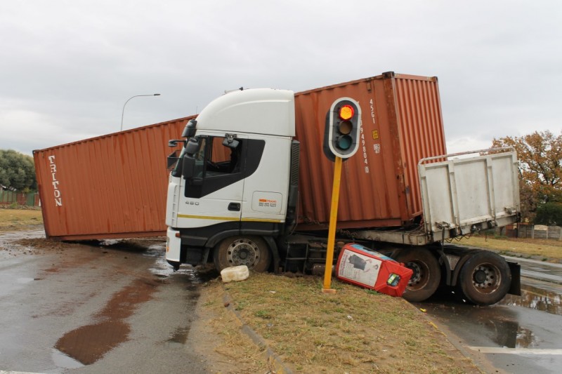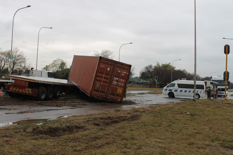 Die vrag wat hy vervoer het lê tans in die pad en ‘n gedeelte van Ringweg is vir verkeer gesluit.