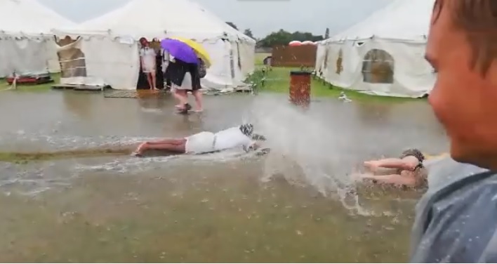 Vanoggend se hewige reënbui in Vanderbijlpark het daarvoor gesorg dat die seunskinders bietjie morsige pret tussen hul tent-klaskamers kon hê.