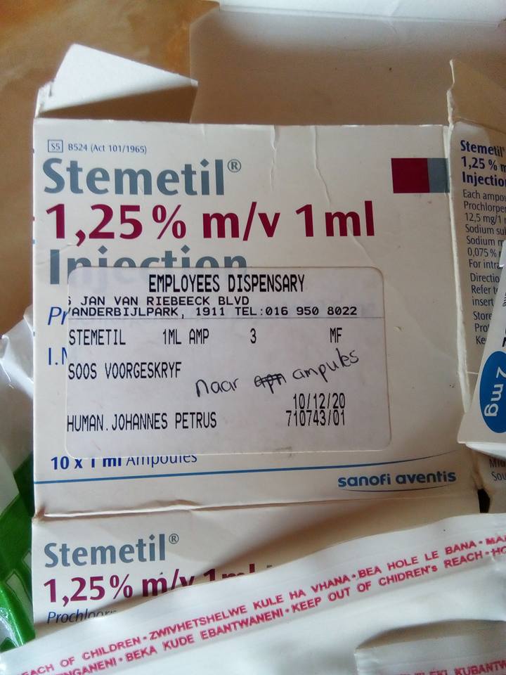 Pasiënte se ou medikasie in parkie afgelaai